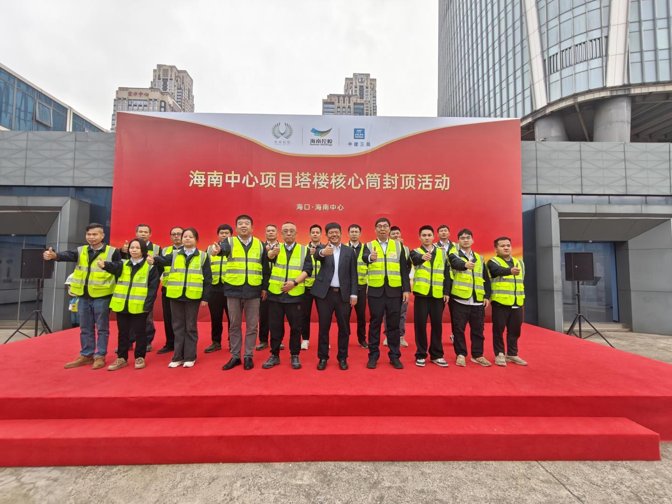 2025年12月16日,随着最后一方混凝土浇筑完毕,海南中心项目核心筒结构成功封顶,项目当前建设高度已达402米,标志着项目建设取得了里程碑式的重大进展。